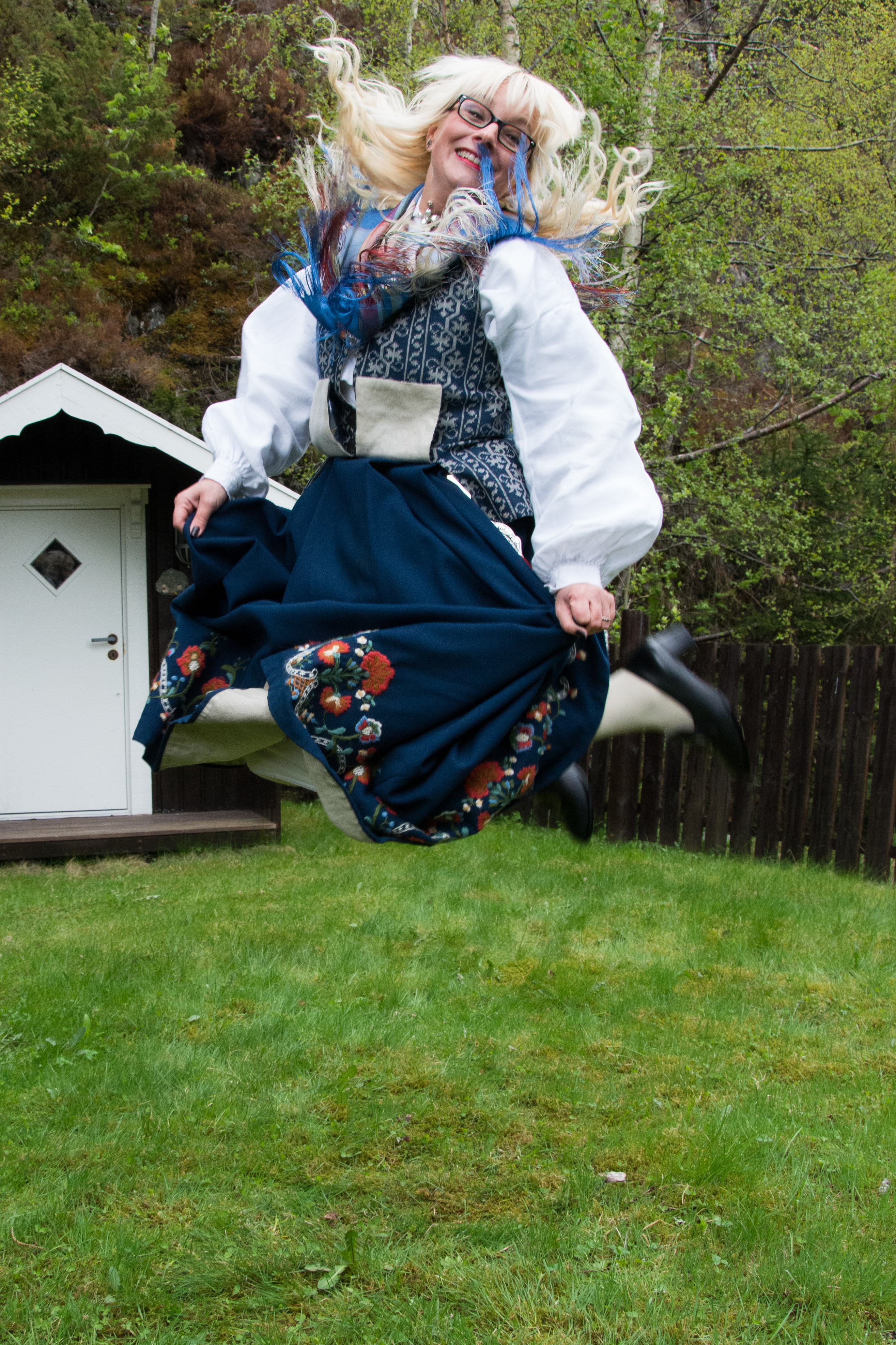 Her er noen bilder av bunaden min, Nord-Trønderbunaden i blått: