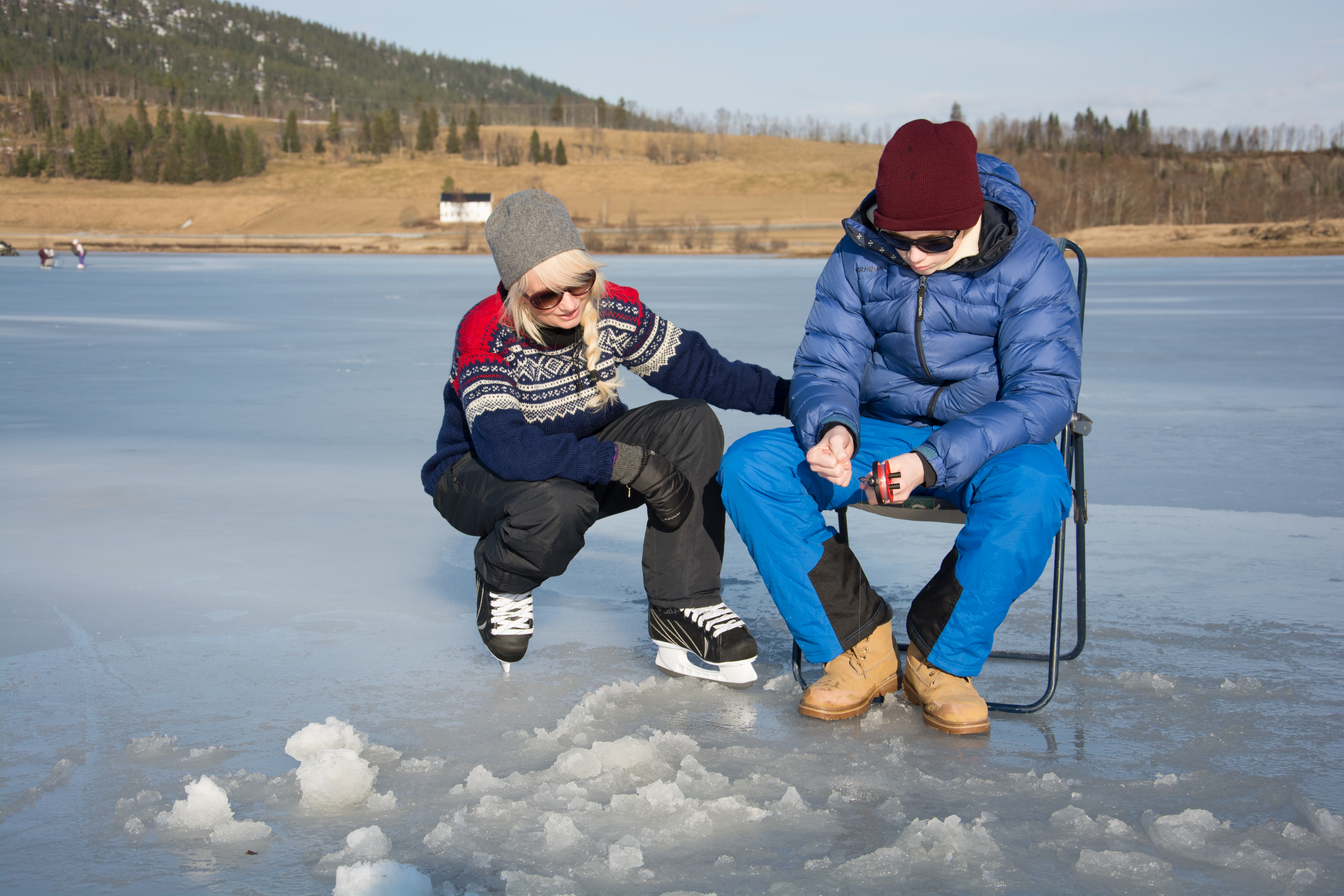 Vi er en aktiv og sosial familie som liker å drive med ulike aktiviteter og bruke tid sammen med venner og familie. Søndag er nok den store turdagen for mange av oss, så i dag har vi vært oppi bygda og på gården hos mine foreldre. Der har vært ute i frisk luft i mange timer, gått på skøyter og prøvd isfiske på Eidsvatnet i nydelig solskinn!