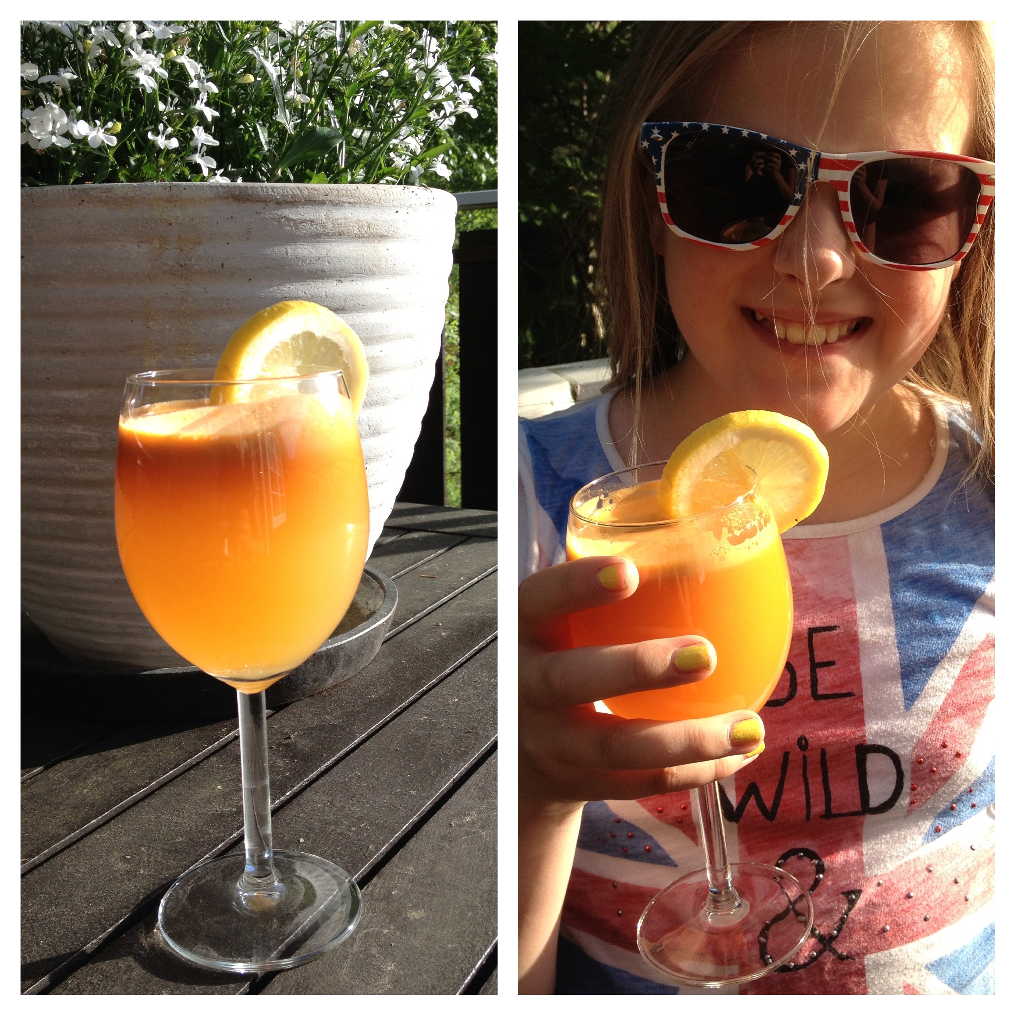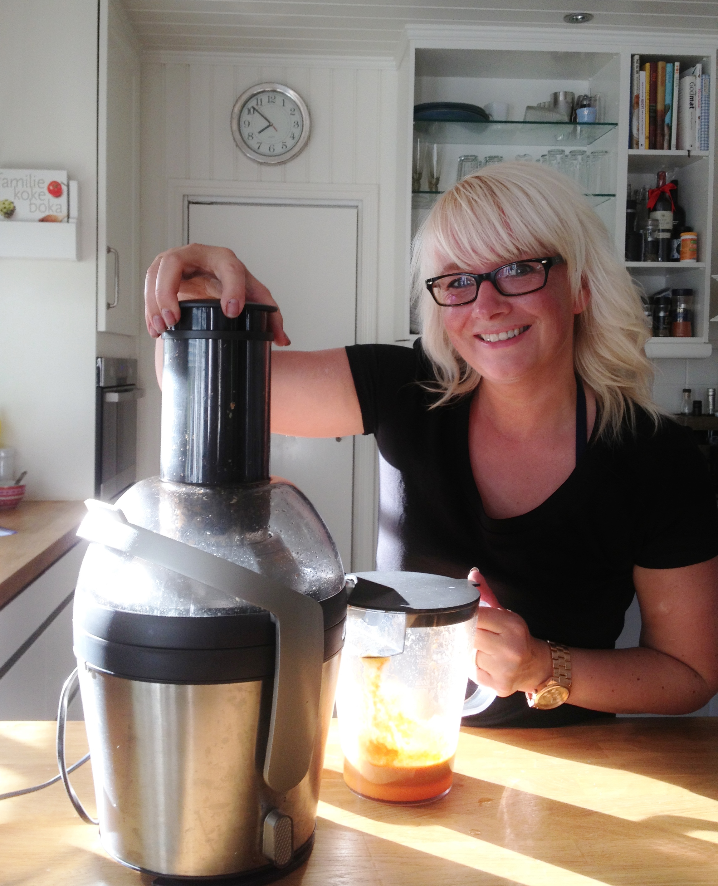 I dag har det vært skikkelig sommertemperatur i rockebyen Namsos 🙂 og ofte blir matlysten mindre når det er så varmt. Jeg prøvde å friste minstejenta Celine med god kveldsmat etter fotballtreninga men hun ville ikke ha noe av det mora foreslo dessverre. Helt til vi ble enige om å lage en skikkelig god juice, ferskpresset frukt og grønnsaksjuice sådan…..